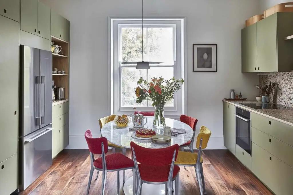 An island and a two-tone kitchen design give your room depth and visual appeal. To make the island stand out, paint it a contrasting color, such as forest green or navy blue against white cabinets. This minor change produces a chic focal point. To improve utility, the island might have shelves, drawers, or a little sink. Any design style, whether classic, modern, or rustic, may benefit from the two-tone effect. It’s a creative way to update your kitchen without doing a complete transformation. Your kitchen is made more comfortable, more unique, and more charming by the combination of colors.