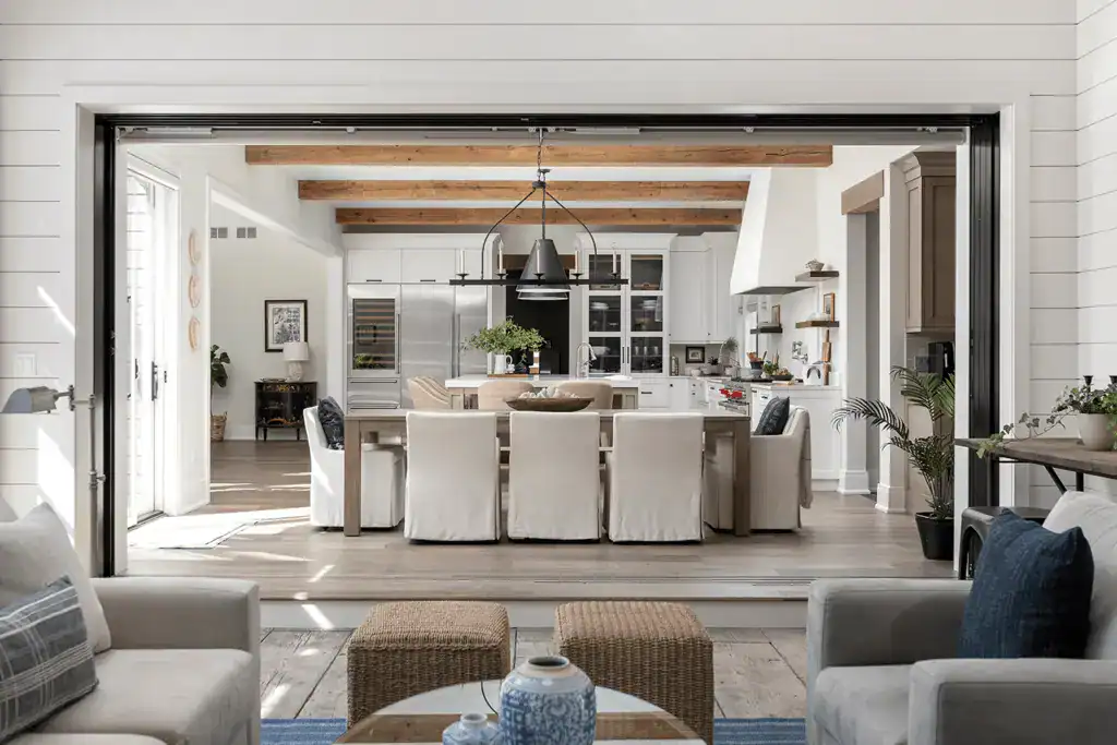 Families that enjoy entertaining are going to love an open-concept kitchen with an island. The kitchen, dining, and living spaces are all connected by the island, which becomes the center piece of the room. Cooking, conversing, and entertaining may all be done together. Cookware storage, a sink for convenience, or seating for informal meals can all be found on the island. This arrangement promotes connection and gives the space a light, airy vibe. It’s perfect for open-concept houses since it makes cooking and living areas flow together harmoniously while maintaining a modern, sociable, and daily-use kitchen.